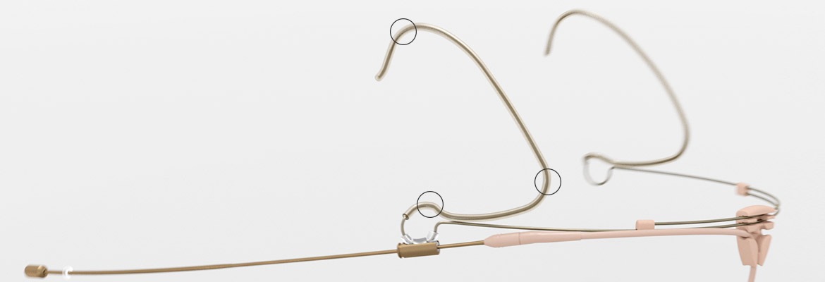 이러한 최소화된 크기와 최대화된 소리 잠재력 외에도, 이 마이크는 완전히 재설계되고 경량적이며 귀에 최대한 편안하게 부착되는 원 사이즈 헤드셋을 자랑합니다. 스프링 메커니즘을 가진 3 포인트 그립은 귀밑과 머리 옆쪽을 잡아주어 보안을 강화합니다. 회전 방지 메커니즘이 있는 두 방향 조정식 붐 시스템(길이 및 높이)은 이 새 헤드셋을 매우 쉽게 장착할 수 있도록 합니다. 새로운 90° 케이블 관리 시스템은 케이블을 보호하고 착용자의 등 아래로 향하게 하여 케이블이 노출되지 않도록 합니다.