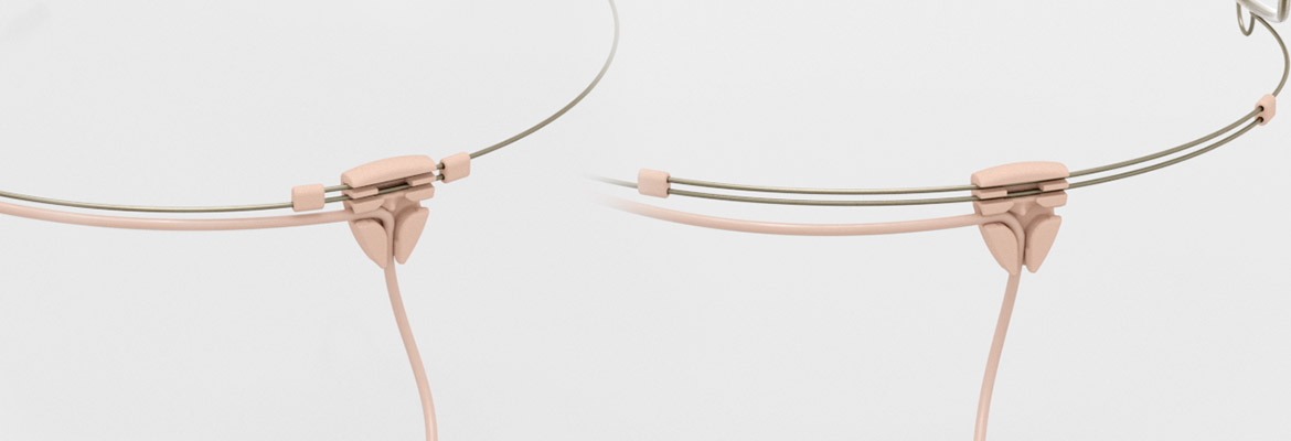 헤드셋에는 헤드셋 프레임 뒤쪽에 케이블 가이드가 있으므로 케이블을 쉽게 구성하여 착용자의 뒤쪽으로 눈에 띄지 않게 할 수 있습니다. 케이블 가이드는 카메라 뷰에서 밖으로 이동할 수 있도록 좌우로 움직입니다. 또한 특수 구조는 케이블을 붐 움직임과 분리하여 붐이 이동할 때 케이블이 당겨지지 않도록 합니다. 이를 통해 마이크 케이블의 수명이 길어져서 보다 오래 사용할 수 있습니다.