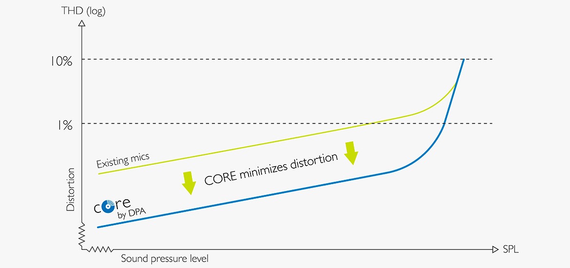 CORE by DPA는 마이크의 핵심에 있는 강력한 신기술입니다. 왜곡을 최소화했습니다. 속삭임에서 비명에 이르기까지, 여러분은 명확성과 개방성이 향상되는 것을 경험하게 될 것입니다. 기존의 d:fine™ 4266 무지향성 헤드셋 마이크는 항상 시장에서 볼 수 있는 가장 분명하고 일관적이며 강력한 소형 마이크 중 하나입니다. 이 제품은 광범위한 동적 범위에서 작동하고 모든 SPL에 걸쳐 낮은 왜곡을 보이는 것으로 알려져 있습니다. 마이크의 성능을 조금 더 끌어올려야 할 경우, CORE(코어)를 선택합니다. d:fine™ CORE 4266 무지향성 헤드셋 마이크에는 1% THD 포인트가 높아짐에 따라 동적 범위가 14dB 증가합니다. 사양에서 볼 수 없는 것은 CORE가 훨씬 더 개방적이고 선명한 소리를 제공한다는 점입니다.