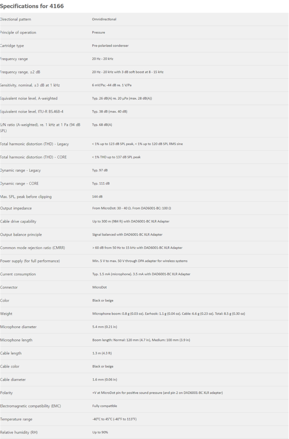 <Total harmonic distortion: < 1% THD up to 137 dB SPL peak / Dynamic range: Typ. 111 dB>