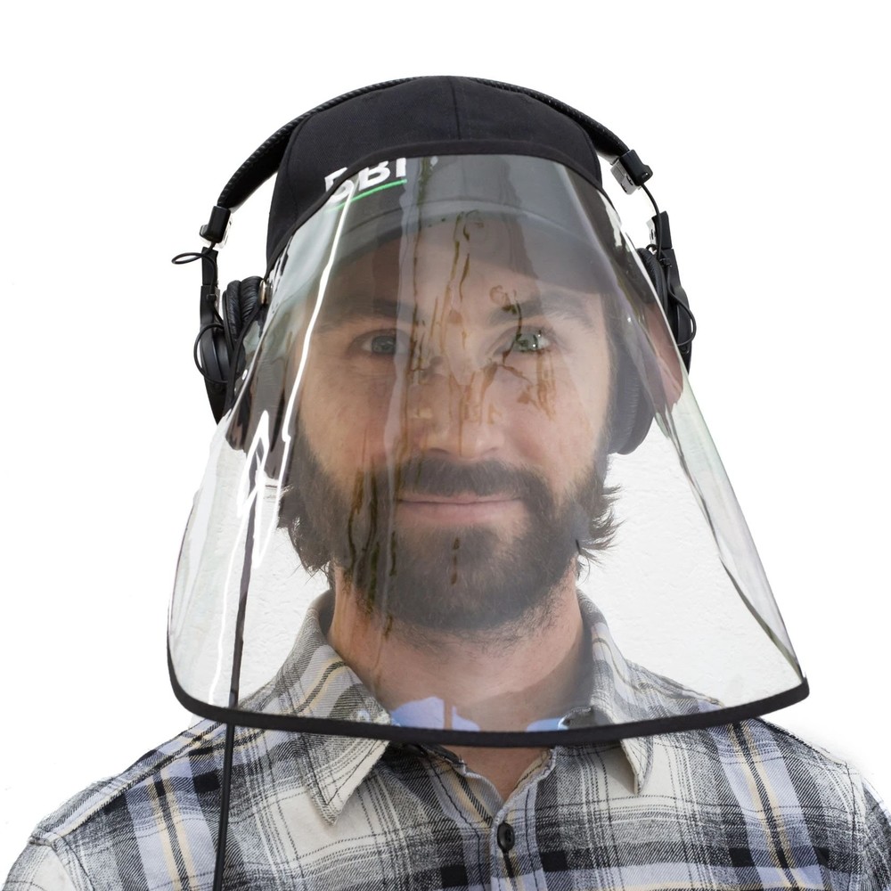 Our 100% Cotton baseball cap with face visor uses press studs to attach or remove a clear face shield for safety when working on set. Suitable for indoor or outdoor use when it's necessary to shield the wearer's face from spray, splatter, droplets, dust, etc.