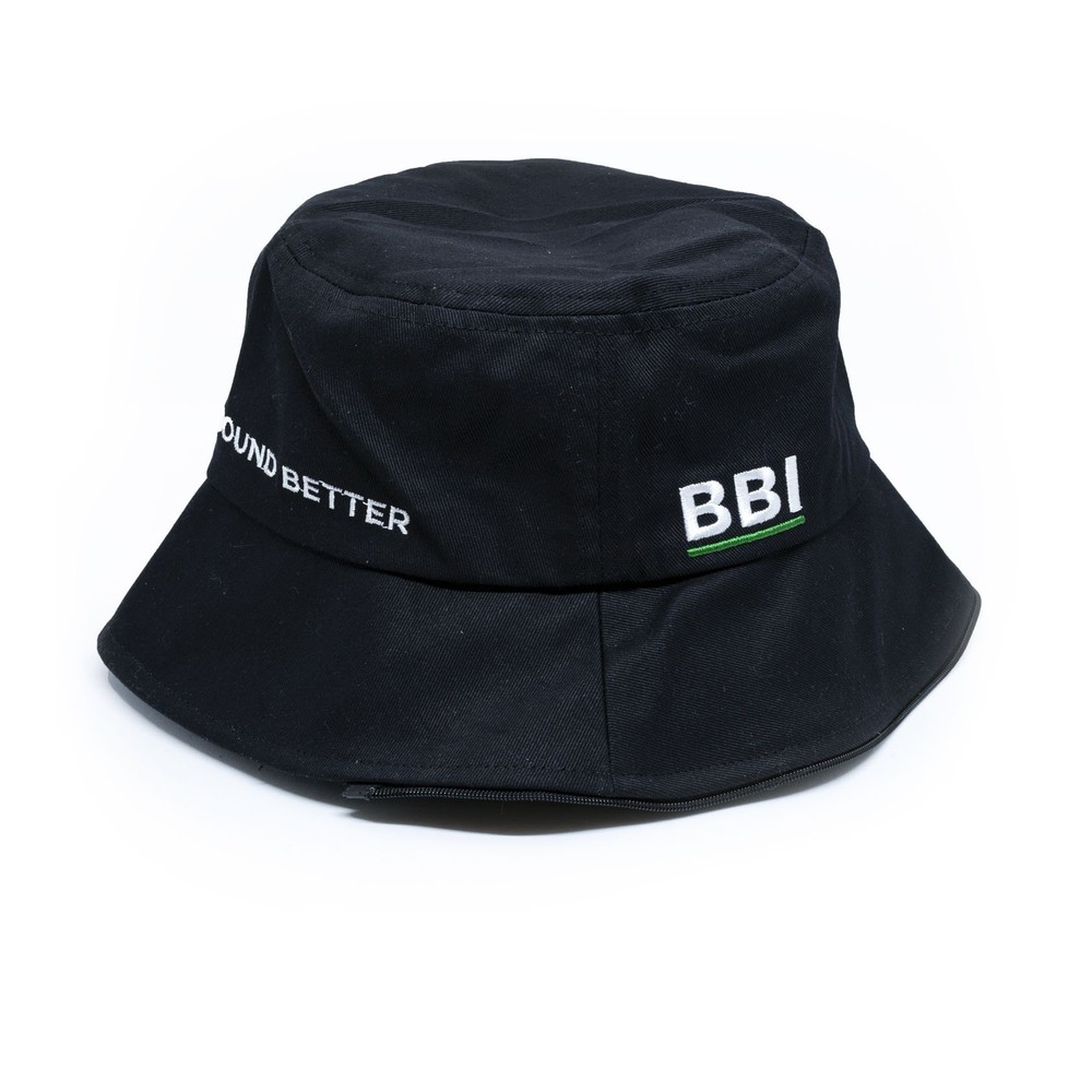 The cap is black with an embroidered 'BBI' logo on the front panel and the phrase, "MAKING SOUND SOUND BETTER" along the back.