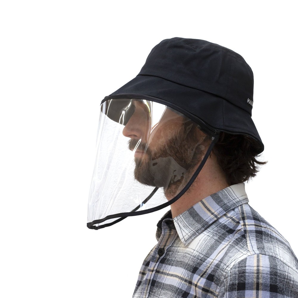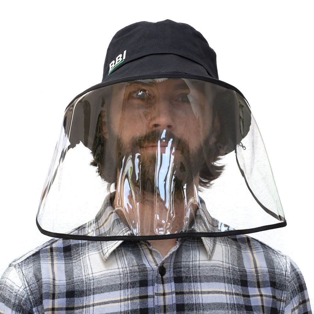 Our 100% Cotton 'bucket'-style hat with face visor uses a zipper to attach or remove a clear face shield for safety when working on set. Suitable for indoor or outdoor use when it's necessary to shield the wearer's face from spray, splatter, droplets, dust, etc.