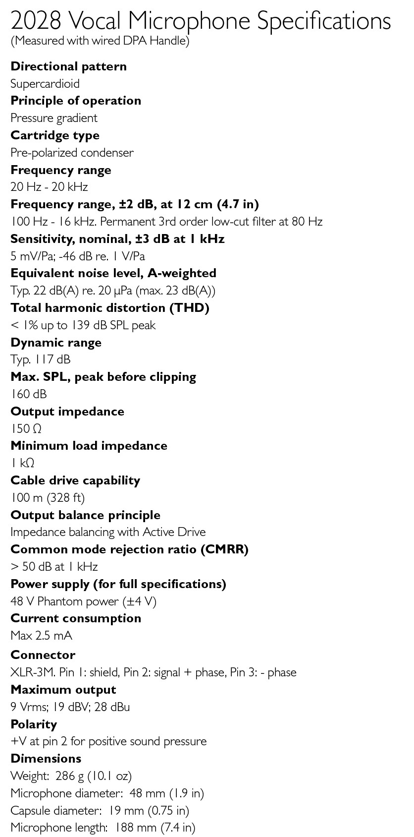 2028 Supercardioid Vocal Microphone Capsule, SL1 Adapter - Black
